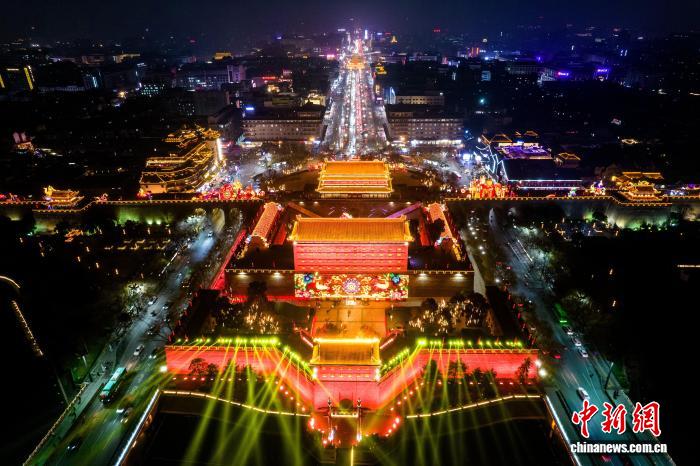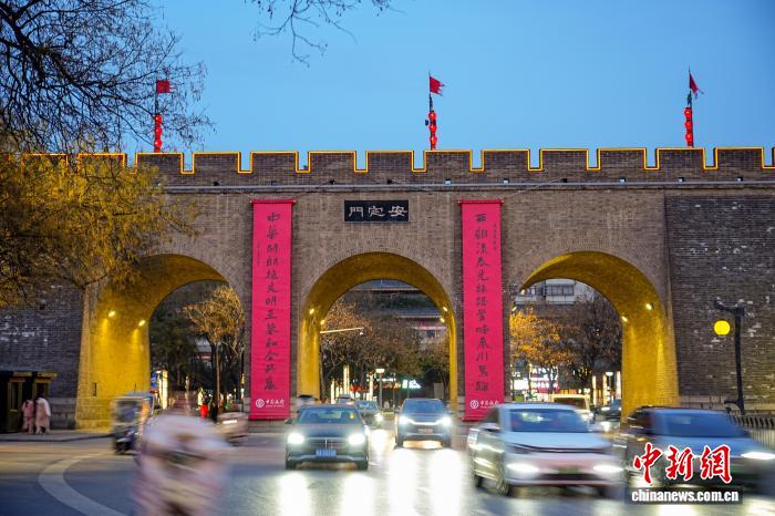 圖為西安城墻懸掛巨幅春聯(lián)?!∥靼渤菈皡^(qū)供圖