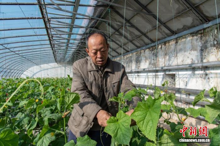村民在楊家窯村的有機(jī)蔬菜大棚內(nèi)工作。楚向東 攝