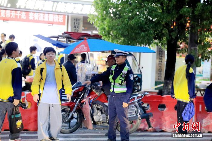 范東升引導孩子過馬路??聡鴱?攝