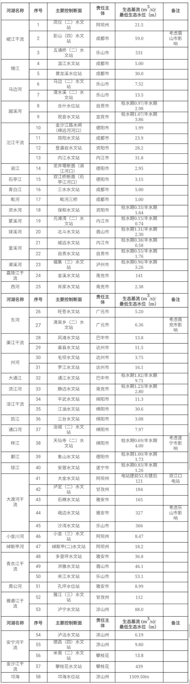 附:四川省第一批重點河湖生態(tài)流量保障目標(試行)圖