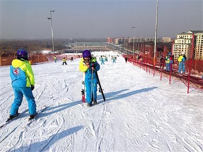 2月6日下午,位于大興區(qū)的龍熙滑雪場內(nèi),上百名滑雪者在此滑行。新京報(bào)記者注意到,許多滑雪初學(xué)者在雪道下方的緩沖區(qū)域內(nèi)練習(xí),一旁練習(xí)道上的滑雪者寥寥無幾?!霸谀膬憾家粯?。”一名在緩沖區(qū)域雪道上逆行、自稱沒有任何滑雪基礎(chǔ)的滑雪者稱。