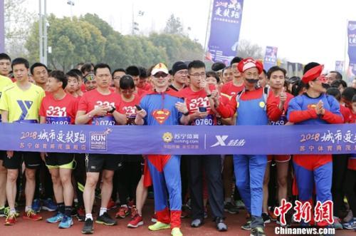中新網(wǎng)3月27日電 近日,由蘇寧體育聯(lián)合特步中國全力打造的首屆2018蘇寧體育“城市變裝跑”在南京綠博園內盛大舉行。這是一場觸發(fā)能量、喚醒春意的體育賽事,不僅是運動愛好者的嘉年華,更是一場全民參與的趣味活動。