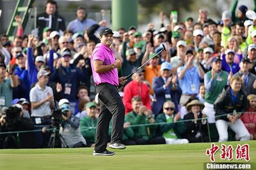 當(dāng)?shù)貢r間4月8日,總獎金1100萬美元的第82屆美國大師賽完成最后一輪賽事。第五次參加美國大師賽的帕特里克·里德(PatrickReed)頂住壓力,四輪過后以總成績273桿獲得美國大師賽冠軍,披上榮耀綠夾克。中新社發(fā) Scott K. Brown 攝