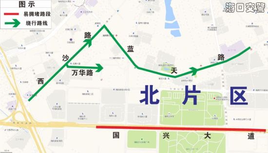 (1)西沙路→萬華路→藍(lán)天路進(jìn)入國興大道北片區(qū)。