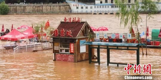 6月27日,黃河蘭州段水位大漲,蘭州城區(qū)近水廣場被淹。 鐘欣 攝
