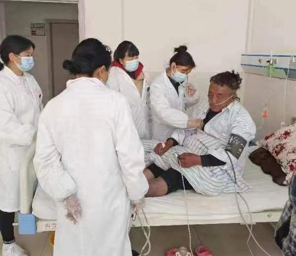 隨后,林旭萍迅速跟隨救護(hù)車到達(dá)現(xiàn)場,患者家屬看見醫(yī)生來了,用著不熟練的漢語說“醫(yī)生,救救他......”通過交流,林旭萍和隨行護(hù)士監(jiān)測生命體征、測血糖,并予以吸氧后,初步考慮是高原反應(yīng)外加呼吸性堿中毒可能,并伴低血糖。在安撫病人及家屬,并予以對癥處理后,患者轉(zhuǎn)危為安?;颊呒凹覍倬浅8兄x樂山市中醫(yī)醫(yī)院的林旭萍和中藏醫(yī)院的醫(yī)護(hù)人員,對于林旭萍來說,自己也感受到了在新龍縣中藏醫(yī)院的價(jià)值與目標(biāo)所在,她告訴自己,自己一定能堅(jiān)定地繼續(xù)服務(wù)于西藏人民。