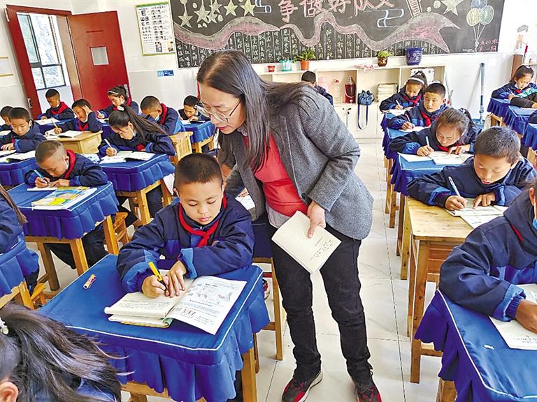 廣東省第三批“組團(tuán)式”教育援藏隊員韓詠梅在察隅縣小學(xué)授課。