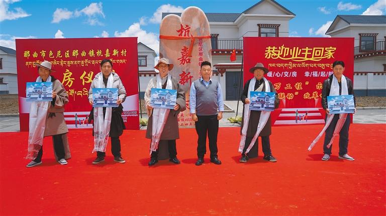 今年6月,那曲市色尼區(qū)那曲鎮(zhèn)杭嘉新村分房儀式現(xiàn)場。記者 萬靖 攝