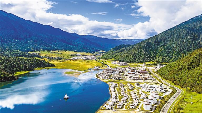 圖為廣東省對(duì)口支援建設(shè)的林芝市巴宜區(qū)魯朗國際旅游小鎮(zhèn)。(圖片由林芝市魯朗景區(qū)管理委員會(huì)提供)