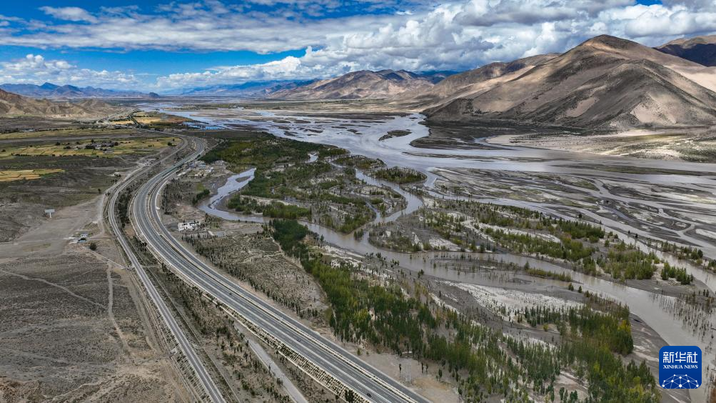 從空中俯瞰西藏拉薩至日喀則高等級(jí)(高速)公路南木林段(9月11日攝,無人機(jī)照片)。