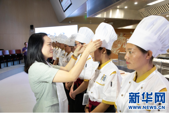 圖為東莞市稻香中菜廚藝職業(yè)培訓(xùn)學(xué)院院長李坤媛與學(xué)員(4月2日攝)。新華網(wǎng)發(fā)(林芝市人力資源和社會保障局供圖)