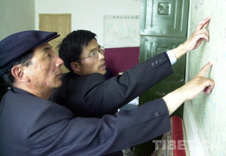 這是時(shí)任雙湖特別區(qū)(現(xiàn)雙湖縣)區(qū)委書記的范科創(chuàng)(右)與副區(qū)長(zhǎng)珠巨(左)在研究當(dāng)?shù)氐慕?jīng)濟(jì)發(fā)展規(guī)劃。為了無人區(qū)開發(fā)事業(yè),范科創(chuàng)在這里默默奉獻(xiàn)了15個(gè)春秋。1986年,他被西藏自治區(qū)黨委授予“優(yōu)秀黨務(wù)工作者”榮譽(yù)稱號(hào)(唐召明2001年攝)