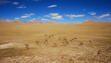羌塘草原,平均海拔超過(guò)4700米。由于自然條件惡劣,這里被稱為“人類生命的禁區(qū)”,但卻是野生動(dòng)物的樂(lè)園。記者穿過(guò)羌塘草原,路遇一群藏羚羊。新華社記者 董琳娜 攝