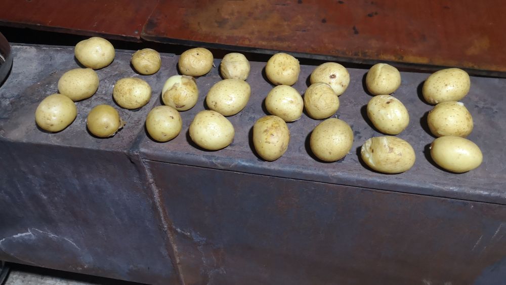 我們?cè)谒逘I(yíng)地的主食之一——爐火烤的小土豆。新華社記者 董琳娜 攝