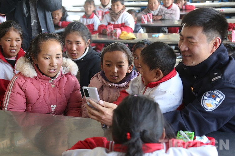 12月15日,在西藏自治區(qū)拉薩市空港新區(qū)甲日小學內(nèi),拉薩出入境邊防檢查站(以下簡稱:拉薩邊檢站)的民警和同學們一起撥通了東莞出入境邊防檢查站(以下簡稱:東莞邊檢站)的視頻電話,孩子們看到屏幕中相隔萬里的廣東東莞的叔叔阿姨們,迫不及待展示最近的學習成果。