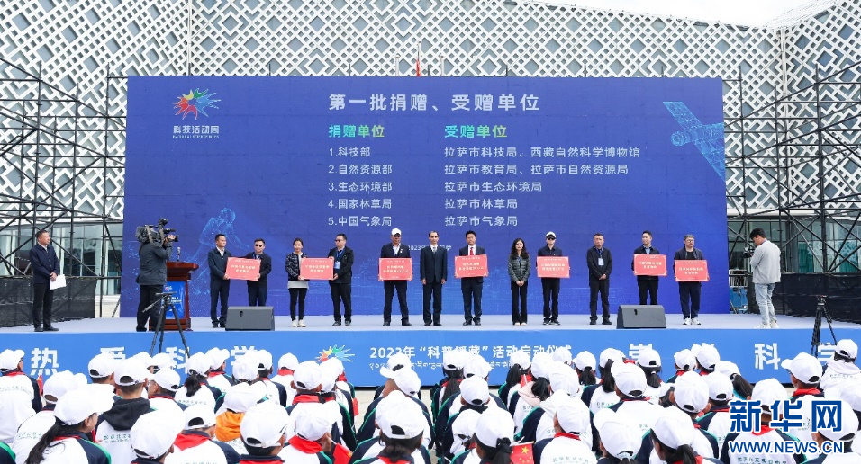 國家林草局科技司帶隊出席啟動儀式,并組織有關單位向拉薩市林草局捐贈林草科普物資。(新華社發(fā) 宋平 攝)