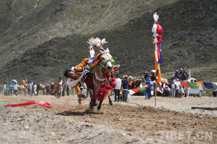 圖為拉薩市曲水縣曲水鎮(zhèn)曲甫村舉辦的“熱烈慶祝西藏自治區(qū)成立60周年暨賽馬節(jié)活動(dòng)”現(xiàn)場(chǎng),此活動(dòng)也是望果節(jié)活動(dòng)的一部分 攝影:王茜