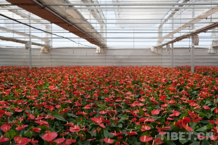 圖為曲水縣秀色才納景區(qū)的紅掌養(yǎng)殖區(qū) 攝影:王茜