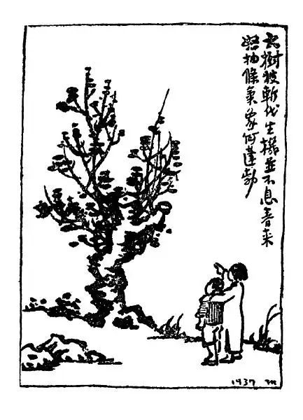 圖為豐子愷多次在畫作中將中國比作大樹,其中一件題詩:“大樹被斬伐,生機(jī)并不息。春來怒抽枝,氣象何蓬勃!” 圖片來源:北京日報