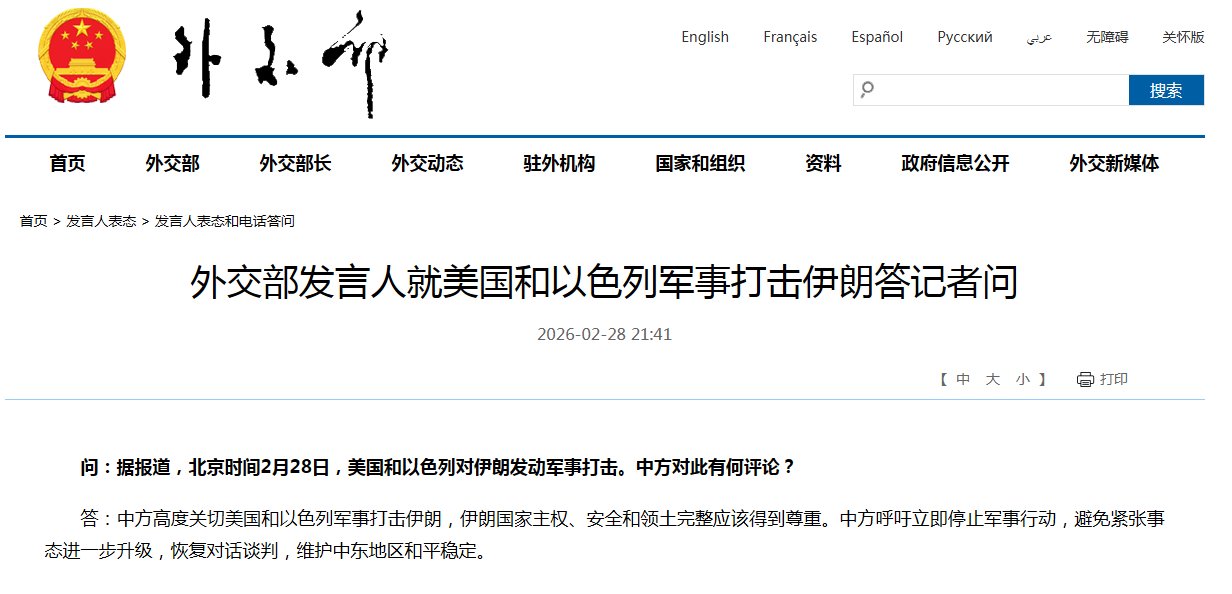 應(yīng)中國和俄羅斯的要求,聯(lián)合國安理會(huì)緊急召開會(huì)議。中國外交部第一時(shí)間表明嚴(yán)正立場(chǎng):伊朗國家主權(quán)、安全和領(lǐng)土完整應(yīng)該得到尊重。