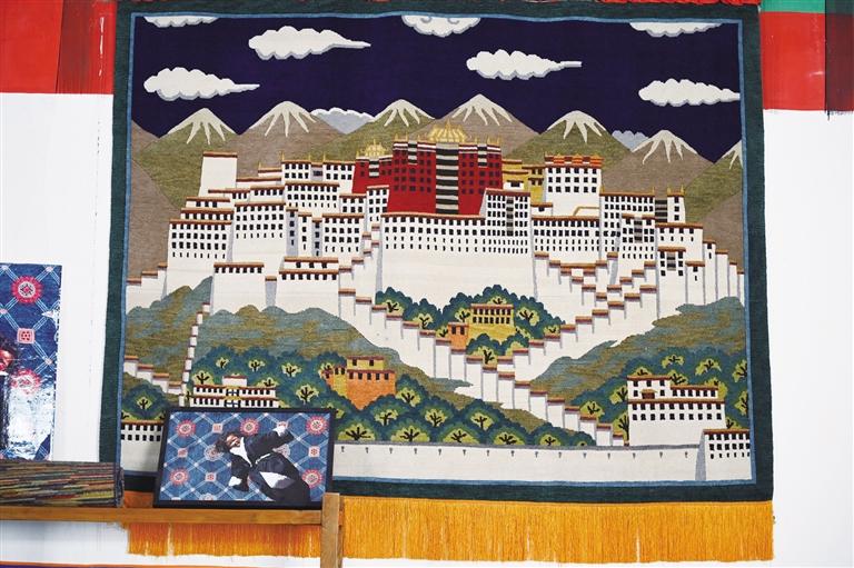 在藏毯廠陳列廳里,懸掛著一幅以布達(dá)拉宮為題材的藏毯。“眼前的這幅藏毯已經(jīng)懸掛十年,沒有任何變形?!笨ν邎圆靥簭S工作人員彭志紅說,可見手工藏毯的質(zhì)量絕佳。