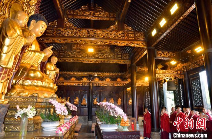 參觀結束后,少年活佛們返回主殿,在釋迦牟尼佛像前敬獻哈達,同寬嚴法師一起誦經(jīng),共同祈愿國泰民安、世界和平。