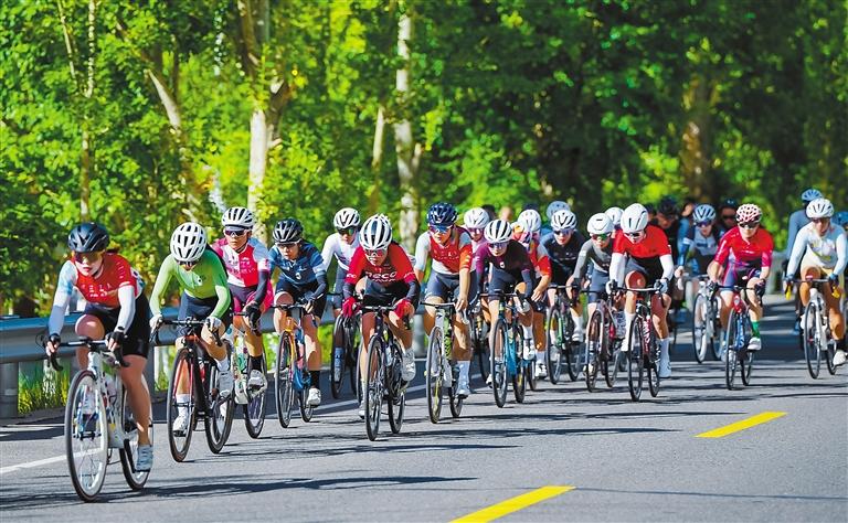 圖為參賽選手在綠蔭環(huán)繞的賽道上競(jìng)速。記者 格桑倫珠 攝