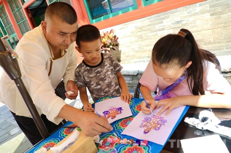 8月9日,中華民族優(yōu)秀文化體驗項目輪展活動,在北京中華民族共同體體驗館(原蒙藏學校舊址)舉行。國家級非物質文化遺產代表性項目熱貢藝術省級代表性傳承人、唐卡畫師扎西尖措?yún)⒓恿舜舜握寡莼顒?,將一場精彩的唐卡藝術體驗課帶到了首都。
