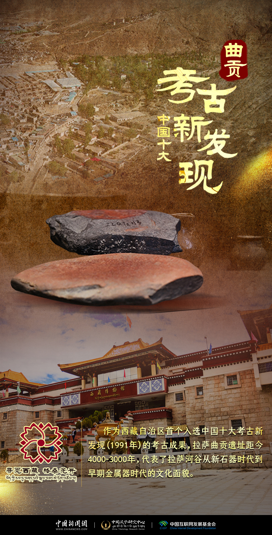 卡若遺址距今約5000年左右,第一次將西藏高原史前人類(lèi)生存活動(dòng)的科學(xué)證據(jù)揭露于世。2021年10月,西藏昌都卡若遺址入選中國(guó)“百年百大考古發(fā)現(xiàn)”。曲貢遺址位于拉薩市北郊,距市區(qū)約五公里,是迄今在西藏發(fā)現(xiàn)的海拔最高、面積最大,文化層堆積較厚,文化內(nèi)涵極其豐富的遺址之一,被譽(yù)為拉薩的“半坡”。它們勾勒出青藏高原的文明年輪。