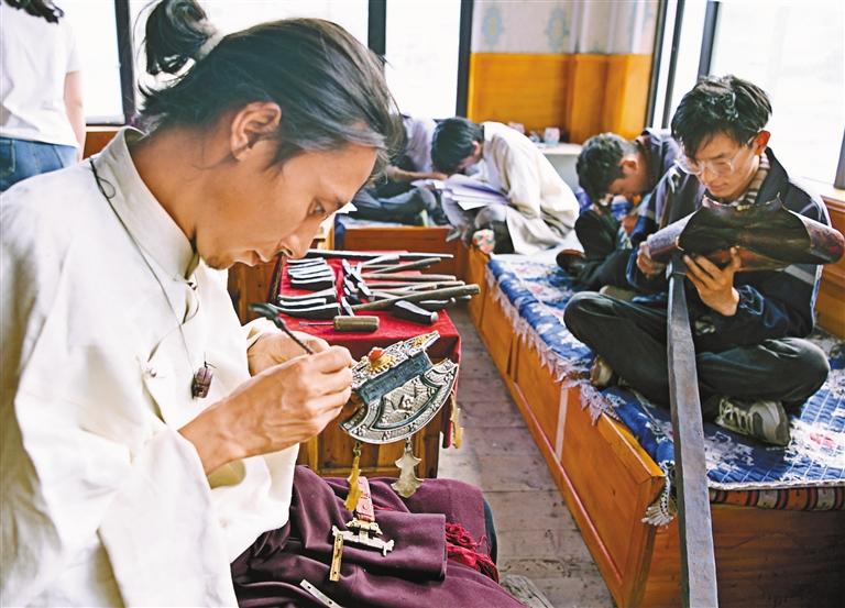 圖為手工藝人在加工配飾。記者 洛桑 攝