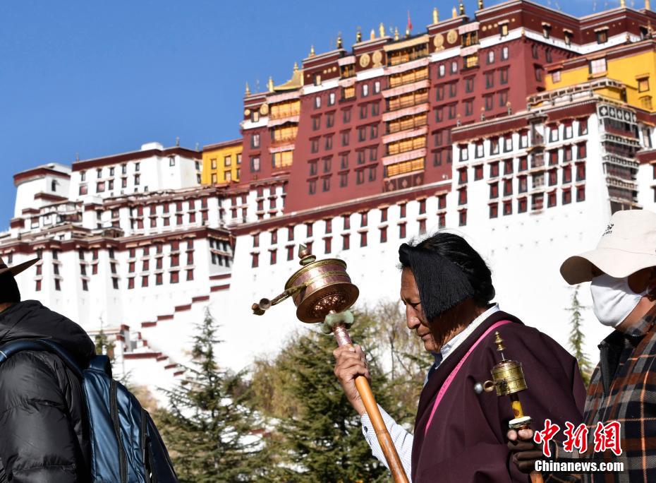冬日的拉薩,陽光和煦。隨著冬季農閑的到來,來自西藏及各地的藏傳佛教信眾來到拉薩,圍繞布達拉宮、大昭寺等地轉經、禮佛、朝拜。圖為12月18日,西藏拉薩,信眾圍繞布達拉宮轉經。