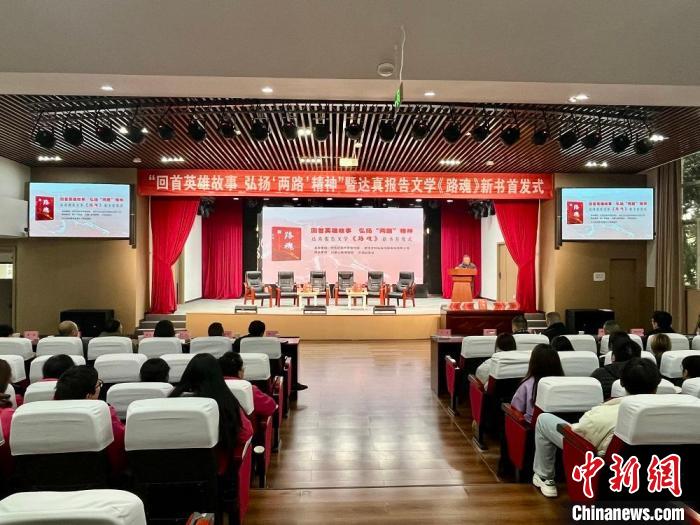 圖為報(bào)告文學(xué)《路魂》新書首發(fā)式現(xiàn)場(chǎng)?!√斓爻霭嫔?供圖