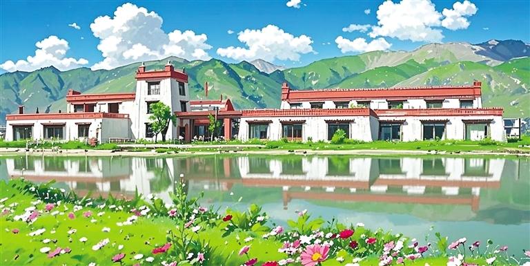 “我就是想以動畫風格給大家展示不一樣的堆龍?!钡┰隼氛f。只見她又將照片導入AI圖片生成軟件內(nèi),AI自動識別圖像元素——經(jīng)幡的布料特性、水流的物理參數(shù)、建筑材質(zhì)的反光數(shù)據(jù)。輕點“生成”按鈕,1分23秒后,一張動畫風格的Shadada CoffeeX新型公共文化空間的圖片便呈現(xiàn)在眼前。重點不是技術,是審美把關,旦增拉姆指著屏幕上的失敗案例:“AI把青稞田處理成糖果色卡通,把圖書館渲染成賽博朋克風格。我每天要調(diào)整無數(shù)次參數(shù),就像教AI理解什么是藏地美學?!彼米瞵F(xiàn)代化的數(shù)字工具,“描繪”著堆龍德慶區(qū)新的光影詩篇。
