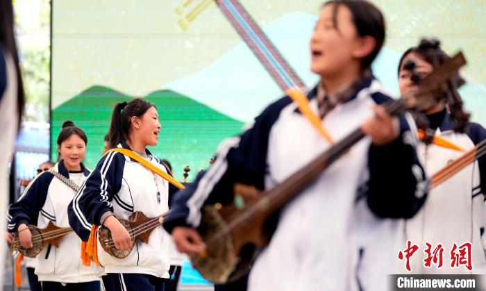圖為4月19日,第二屆“拉薩春日書(shū)會(huì)”暨拉薩市全民閱讀推廣周系列活動(dòng)開(kāi)幕式上的扎念琴?gòu)棾?。李?攝