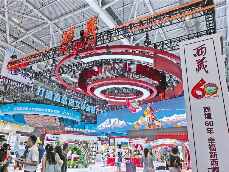 從2006年首次參展時以特色農產品為主,到如今的文化創(chuàng)意產品多元展示、科技賦能,西藏館的展示內容不僅透出強勁的融合力與創(chuàng)新力,更是西藏文化產業(yè)演進的生動縮影。