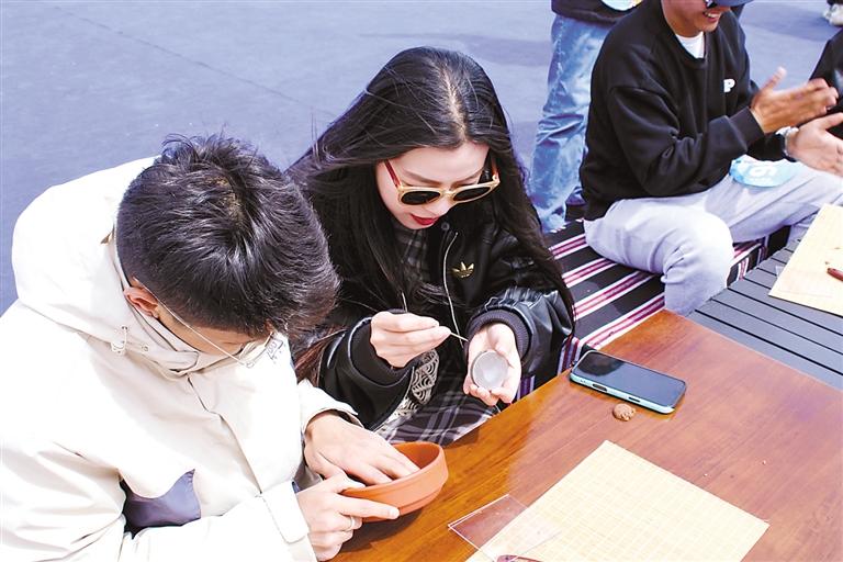 青年演奏扎念琴等樂器。記者 劉斯宇 攝