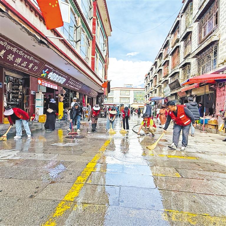 近日,拉薩市城關(guān)區(qū)八廓街道沖賽康社區(qū)黨總支開(kāi)展“黨建引領(lǐng)聚合力,清潔家園促文明”環(huán)境整治活動(dòng)。30余名黨員志愿者、駐社區(qū)工作隊(duì)員及網(wǎng)格員分工協(xié)作,手持清潔工具深入大街小巷,清理衛(wèi)生死角、鏟除墻面小廣告,并對(duì)廣場(chǎng)地面進(jìn)行高壓沖洗?;顒?dòng)以“黨建紅”引領(lǐng)“生態(tài)綠”,推動(dòng)基層治理與文明城市創(chuàng)建深度融合,為社區(qū)居民營(yíng)造整潔宜居的生活環(huán)境。