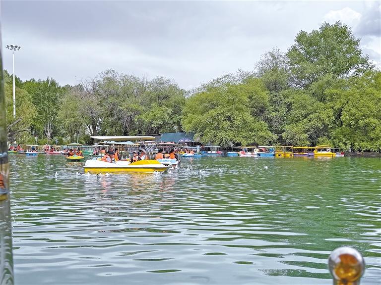 市民游客在宗角祿康公園劃船游玩。記者 侯廣臣 攝