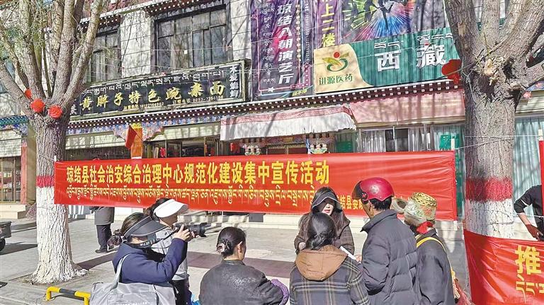 瓊結(jié)縣社會治安綜合治理中心規(guī)范化建設(shè)集中宣傳活動現(xiàn)場。 圖/文 記者 巴桑旺姆