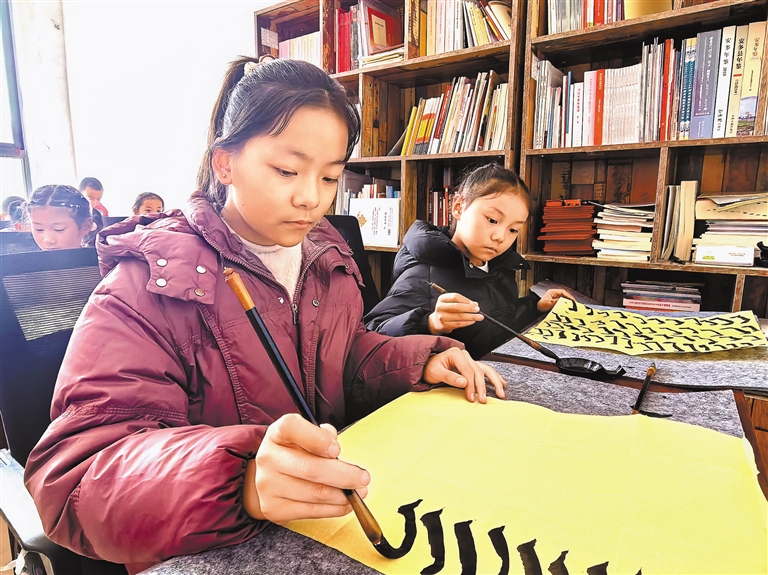 圖為小學(xué)生正在練習(xí)書法。記者 曲珍 攝