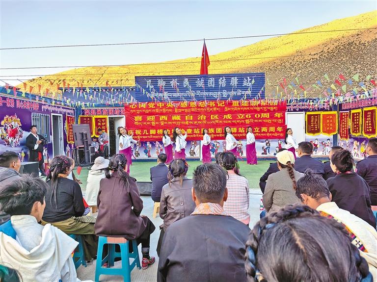 近日,日喀則邊境管理支隊幾腳橋邊境檢查站洋溢著歡樂氛圍,以“同心筑夢共奮進 團結花開譜新篇”為主題的民族團結驛站成立兩周年慶典活動在此舉行,生動展現(xiàn)了這座“暖心驛站”服務各族群眾、促進交往交流交融的豐碩成果。