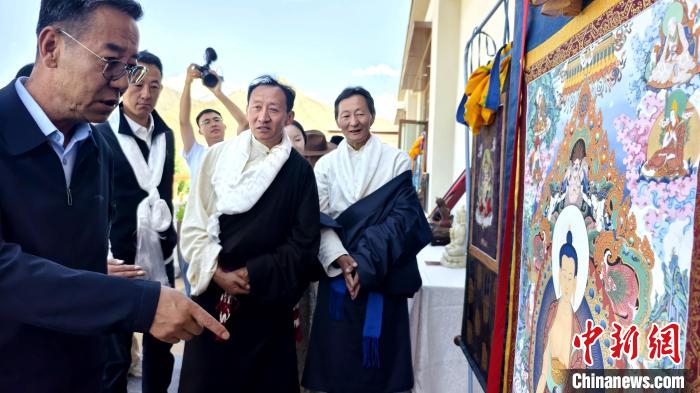 圖為參加《YOOBEI守藝人計(jì)劃》啟動儀式的工藝美術(shù)大師參觀唐卡等作品。貢桑拉姆 攝