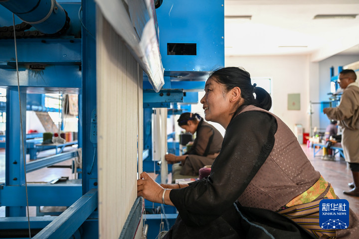 藏毯編織車間內(nèi),婦女正在編織藏毯。新華社記者 李鑫 攝