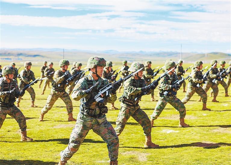 那曲市2025年度“軍事日”活動日前在那曲軍分區(qū)某訓(xùn)練場舉行。這是官兵們在進行軍事科目演示。記者 萬靖 攝