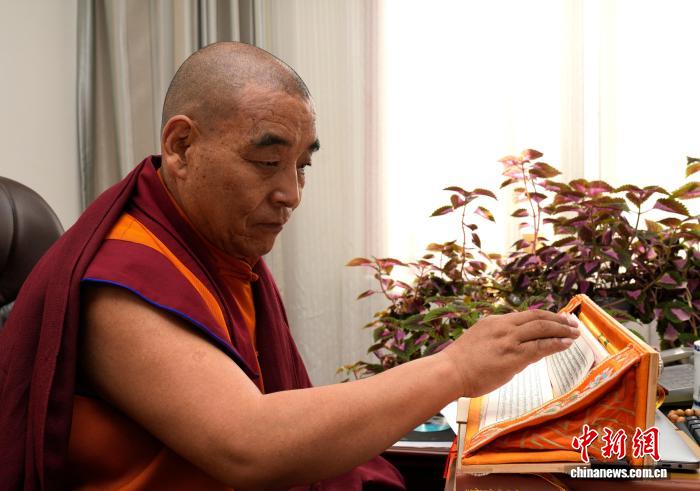 圖為班典頓玉在翻閱經(jīng)書。李林 攝