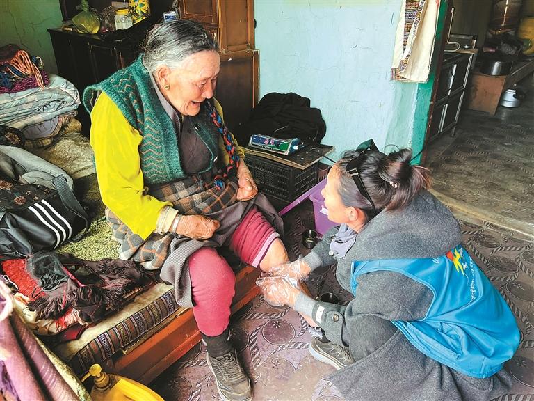清晨的陽(yáng)光灑在林周縣春堆鄉(xiāng)卡東村的土路上,林周縣民政服務(wù)站工作人員旦增旺姆背著裝滿(mǎn)蔬菜和藥品的布袋,熟門(mén)熟路地走進(jìn)仁增拉卓老人的院子?!鞍尷?,今天給您帶了新鮮的蘿卜,再把降壓藥給您續(xù)上?!?3歲的仁增拉卓顫巍巍迎上來(lái),拉著旦增旺姆的手笑得眼角堆起皺紋——這樣的清晨探望,早已成為老人日常生活里的“定心丸”。