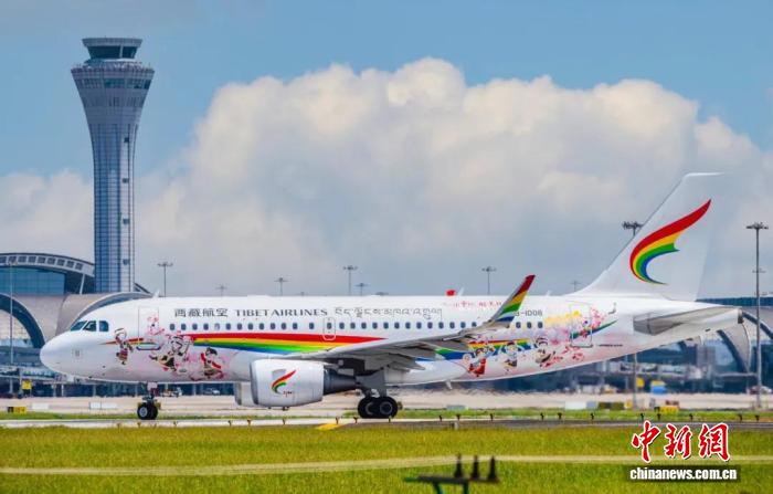 圖為“林芝文旅號”主題航班落地林芝米林機場。林芝市文化和旅游局 供圖