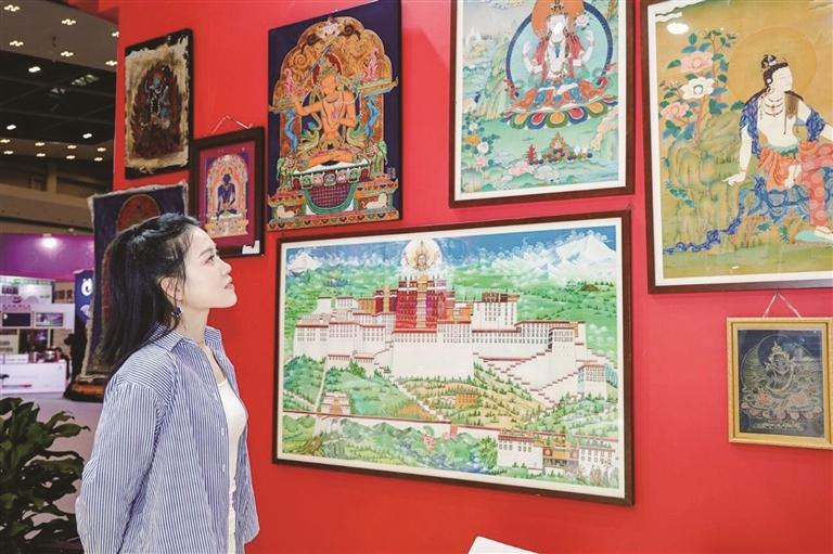 場館外,熱情奔放的康巴歌舞洋溢著濃郁的民族風(fēng)情。走進(jìn)場館內(nèi)部,可以近距離體驗(yàn)藏香制作和飄逸靈動的藏文書法。唐卡漆畫、民族手工飾品等藏東文化和蟲草、貝母、藏紅花等特色產(chǎn)品琳瑯滿目,更有邊壩三色湖、貢覺拉妥濕地、芒康千年鹽田、洛隆俄西杏花等雪域美景,進(jìn)館咨詢互動的企業(yè)、嘉賓絡(luò)繹不絕。