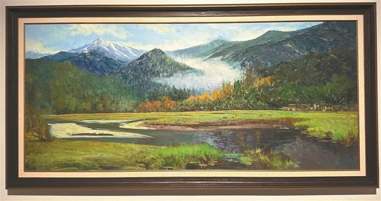 圖為格桑次仁油畫作品《綠水青山》(局部)。