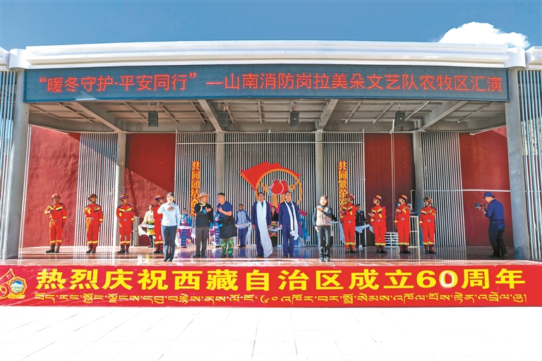 近日,山南市消防救援支隊崗拉美朵文藝隊“農(nóng)牧區(qū)暖冬消防行”巡演首演,在乃東區(qū)多頗章鄉(xiāng)嘎東團結(jié)新村正式拉開帷幕。